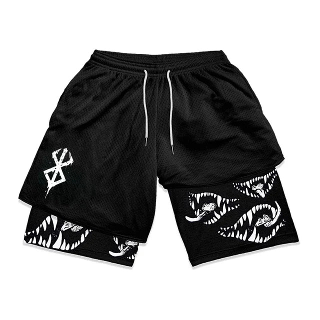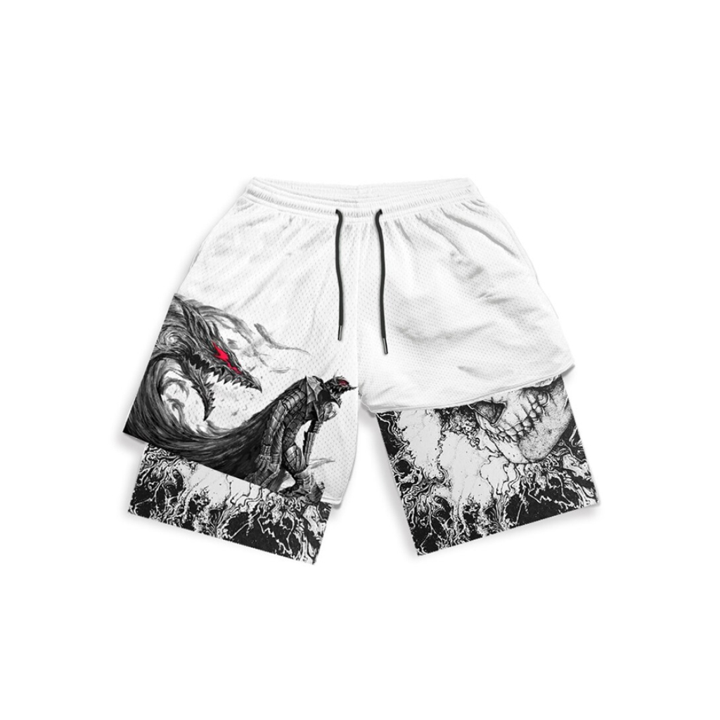 Anime Skull Warrior Print Black Full Print Sports Shorts