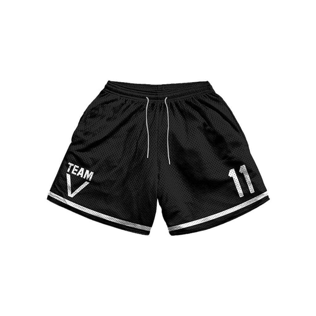 "Team Z 11" Text Print Black Drawstring Full Print Sports Shorts