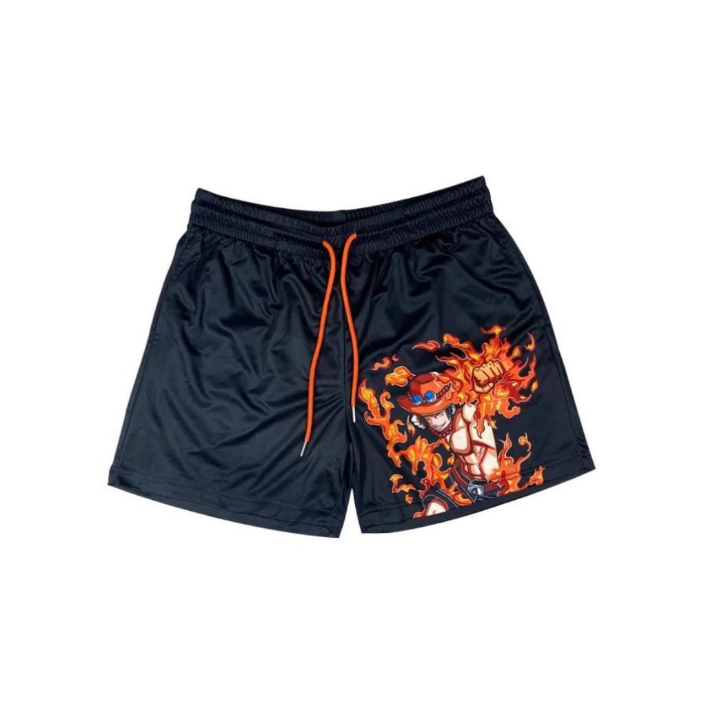 Anime Character "Monkey D. Luffy" Print Black Drawstring Sports Shorts Covered With Print