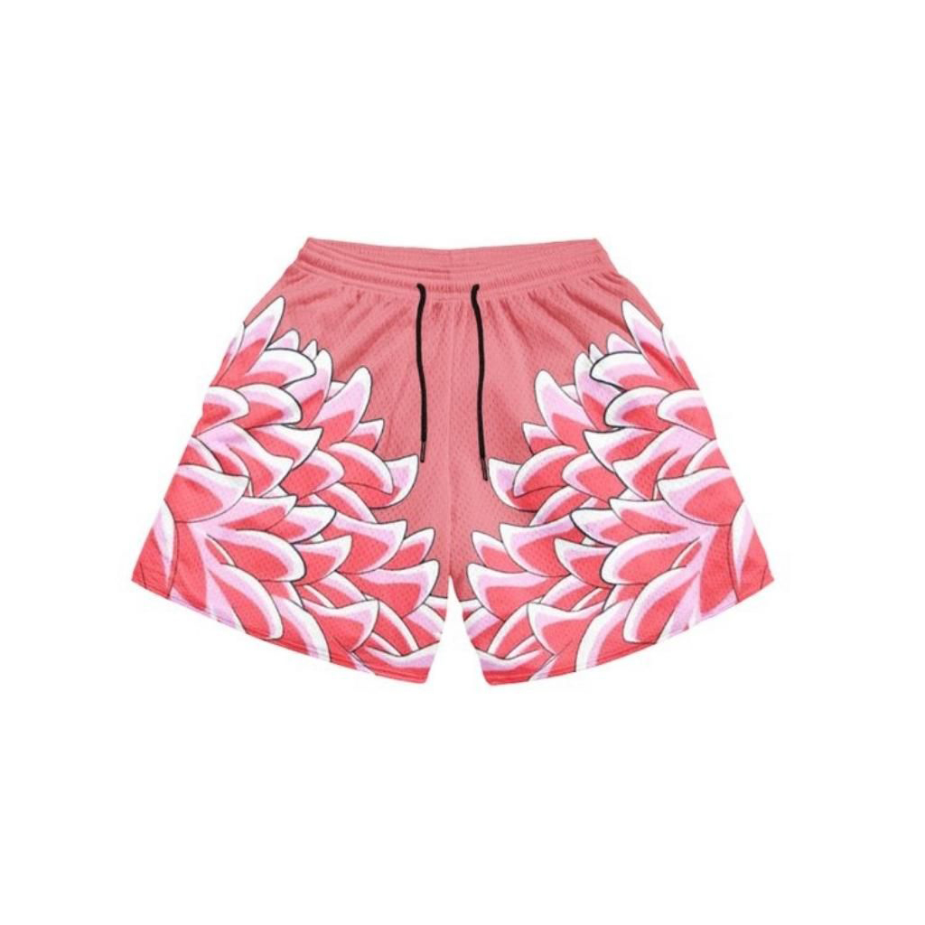 Bared Teeth Anime Character Print Pink And White Color Full Print Sports Shorts