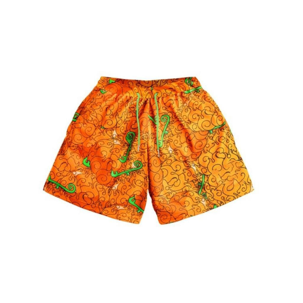 Anime Cloud Print Orange Drawstring Full Print Sports Shorts