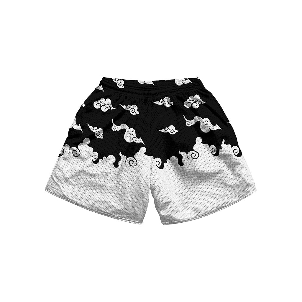Anime Somersault Cloud Print Black And White Color Full Print Sports Shorts