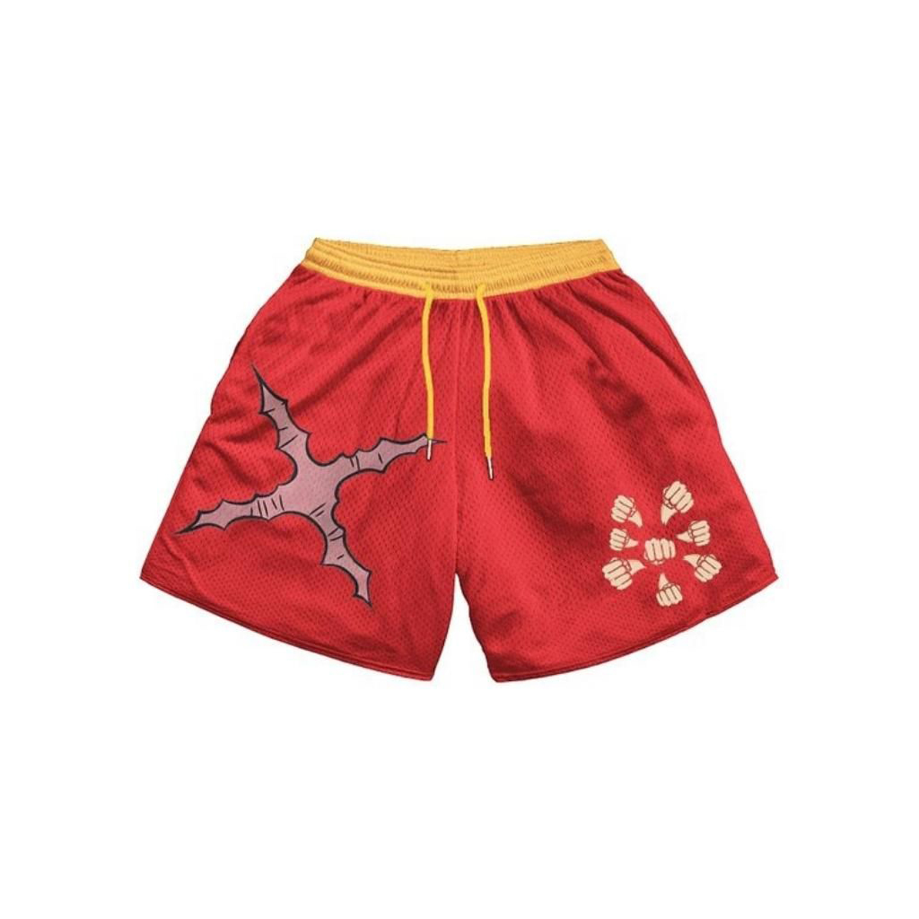 Anime Character "Monkey D. Luffy" Print Black Drawstring Sports Shorts Covered With Print