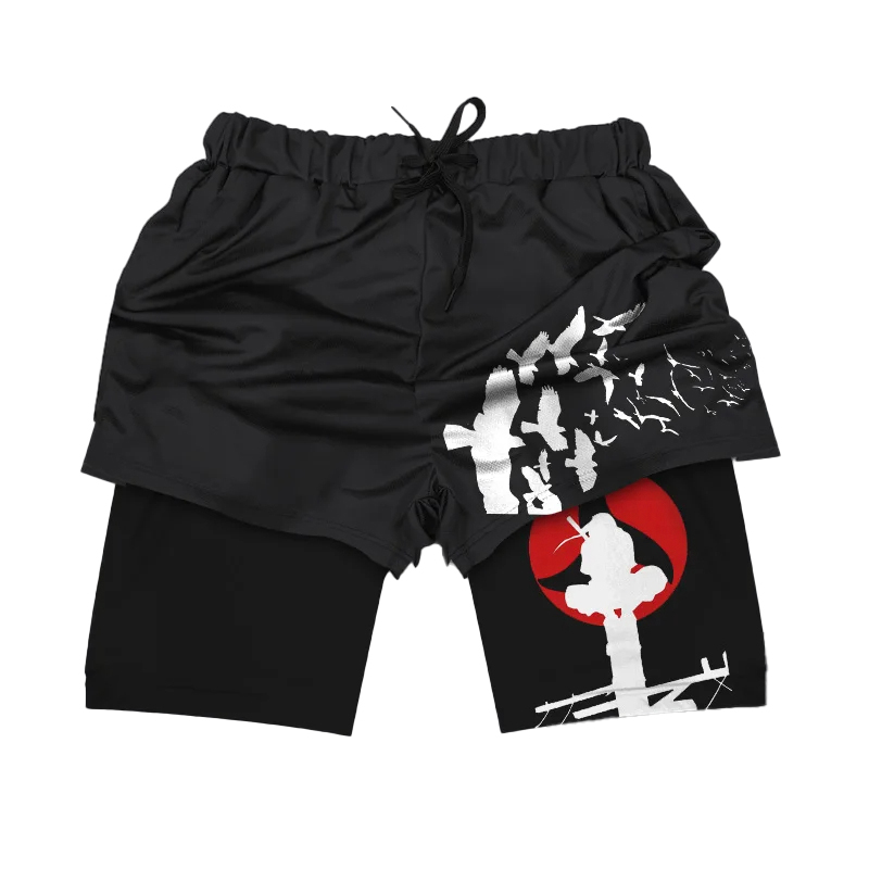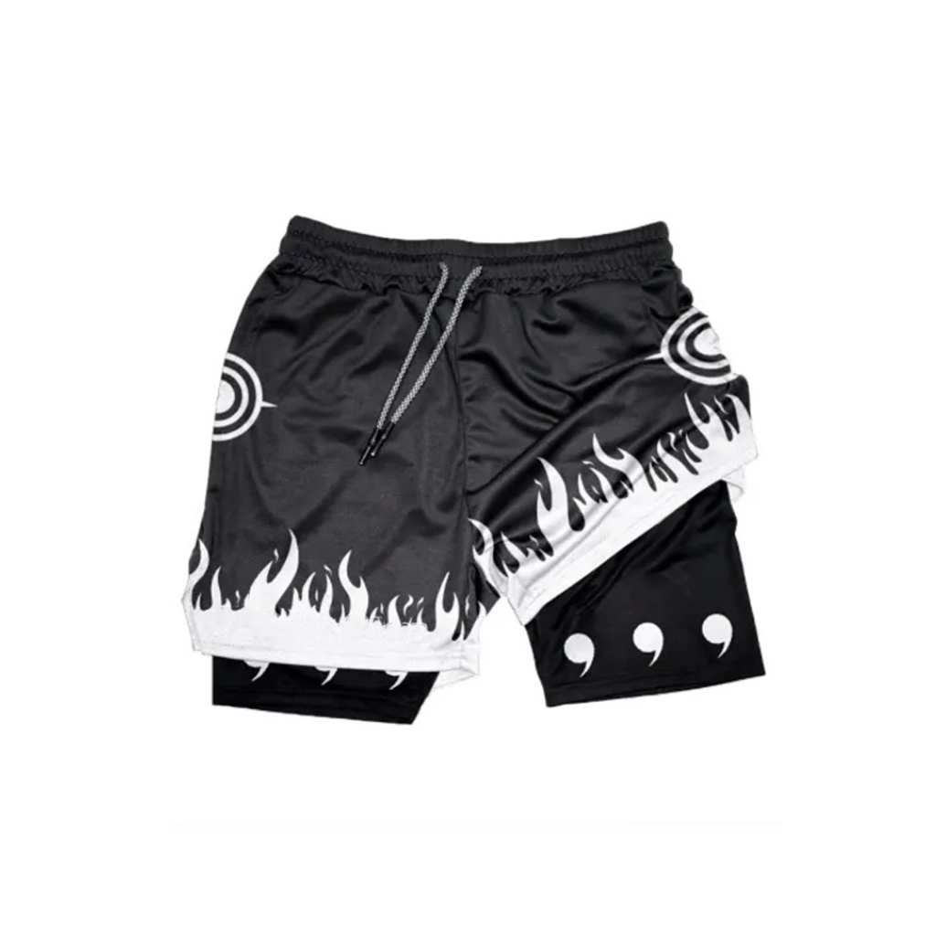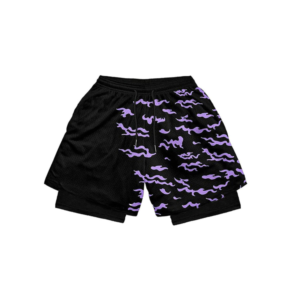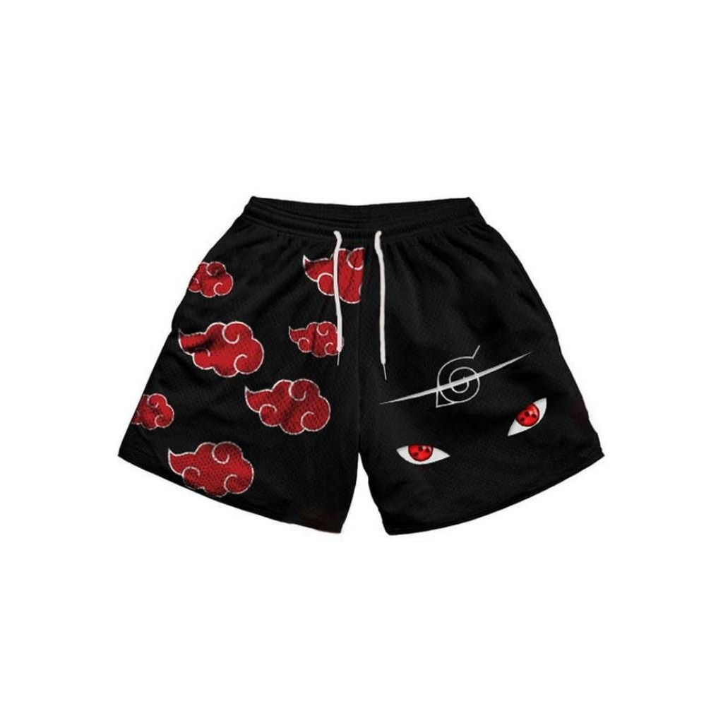 Anime Somersault Cloud Print Black Full Print Sports Shorts