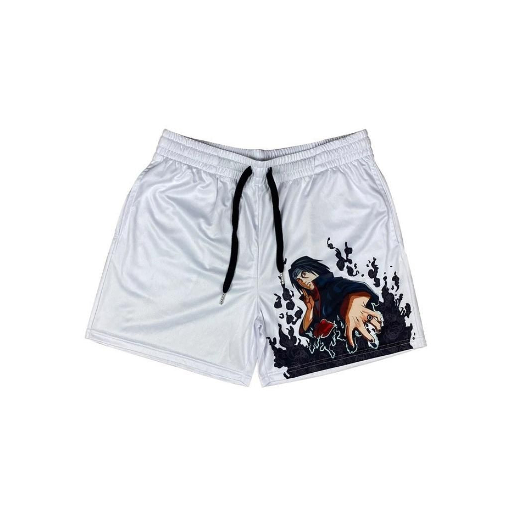 Anime Character Print Black Drawstring Full Print Sports Shorts