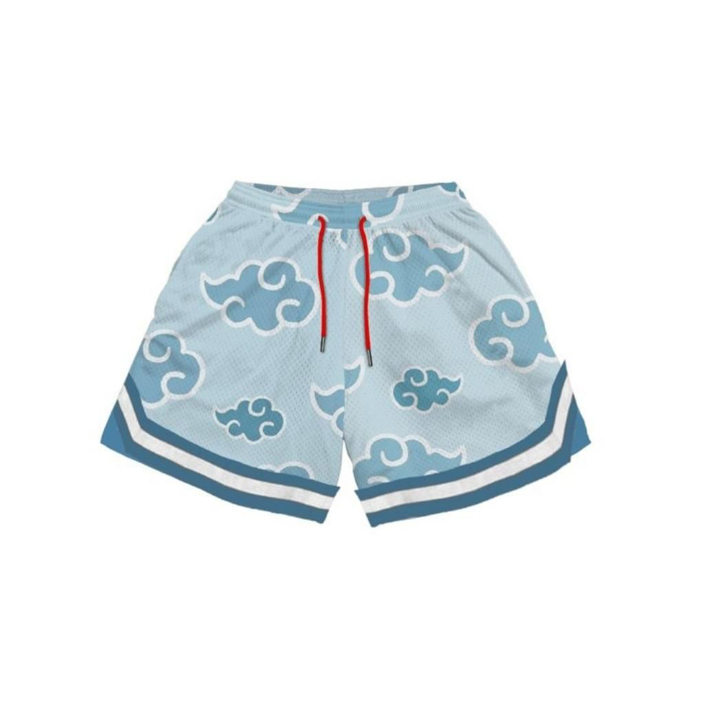 Anime Somersault Cloud Print Light Blue Full Print Sports Shorts