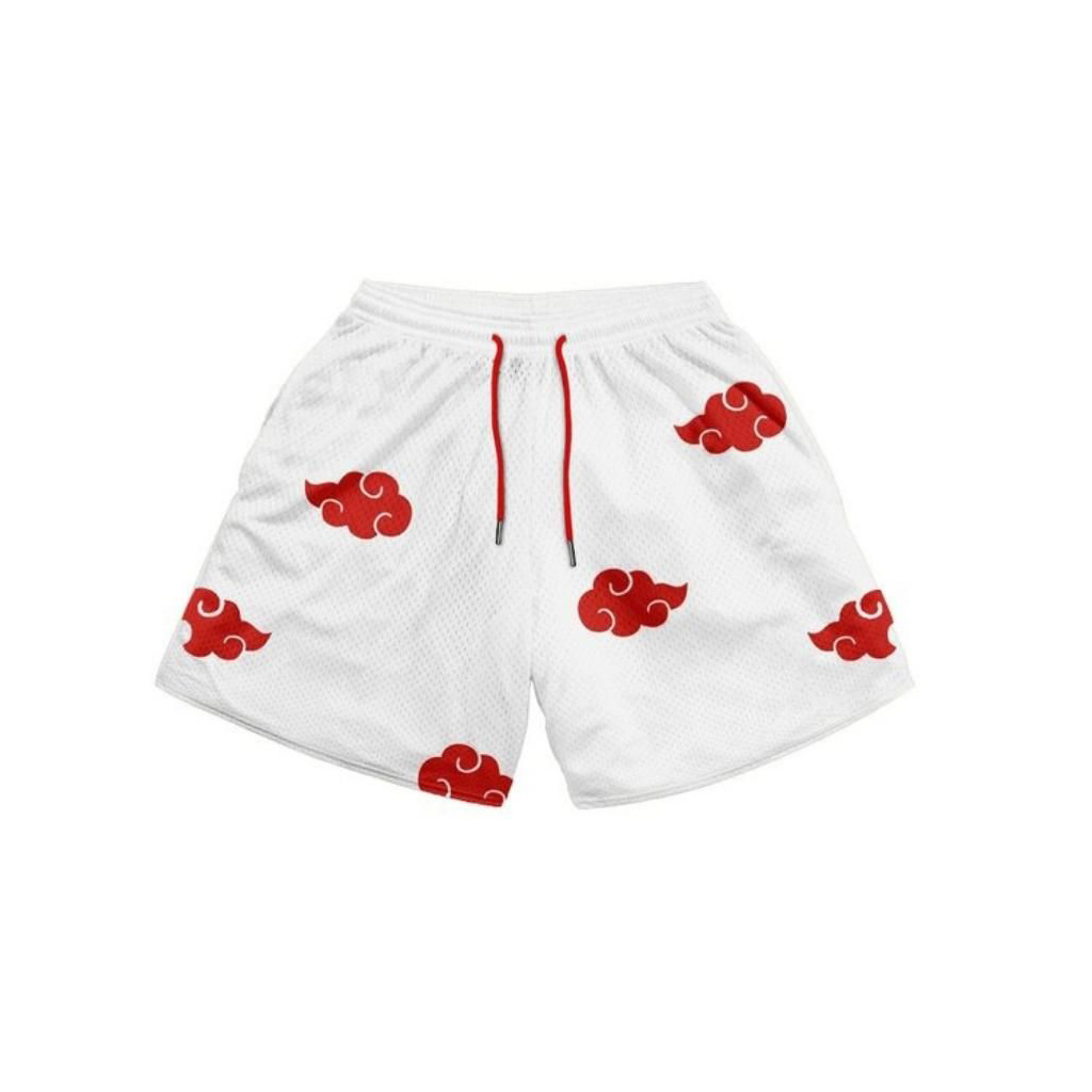 Red Somersault Cloud Print White Full Print Sports Shorts