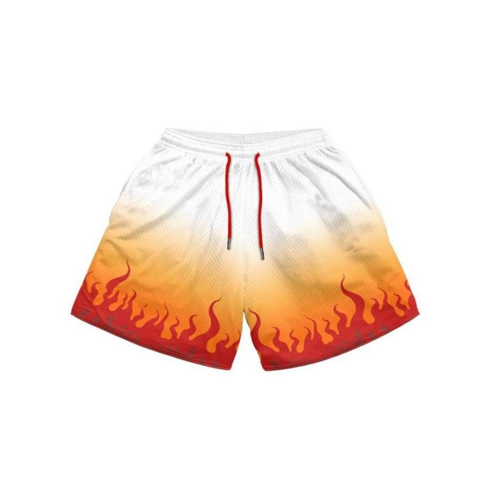 Red Flame Print Orange Drawstring Full Print Sports Shorts